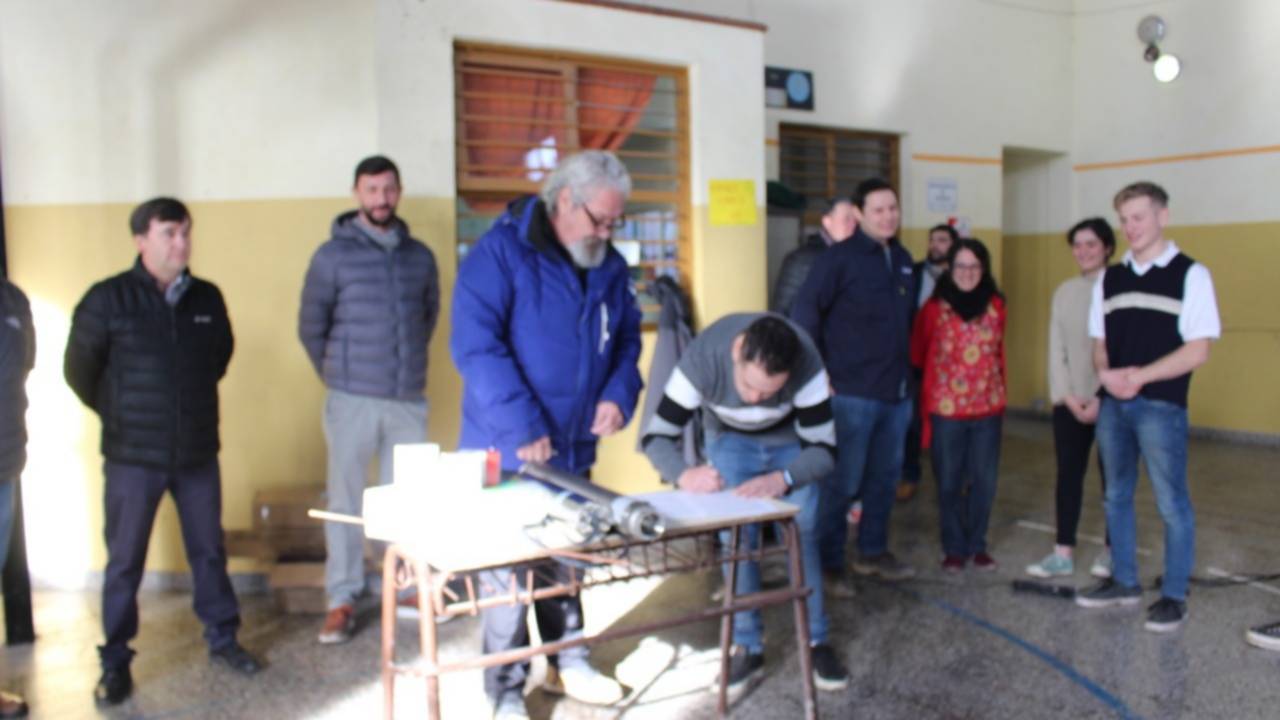 La Cooperativa 16 de Octubre, representada en este acto por el Presidente del Consejo de Administración, Miguel luminati y los Directivos de la Escuela Provincial Nº740 EMETA, Directora, María Valeria Brandi, Vicedirectora, Ana Jaurena y el Profesor responsable del Proyecto, Rodrigo Juarez, firmaron un convenio de colaboración mutua.