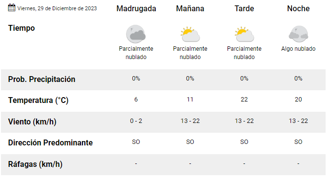 Según la información oficial que suministra la página del Servicio Meteorológico Nacional, este día viernes en la ciudad de Esquel, tendremos una temperatura máxima de 22º C.