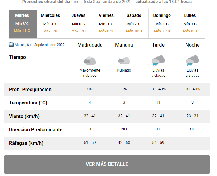 Según el Servicio Meteorológico Nacional, para hoy se espera una máxima de 11°C y mínima de 3°C.