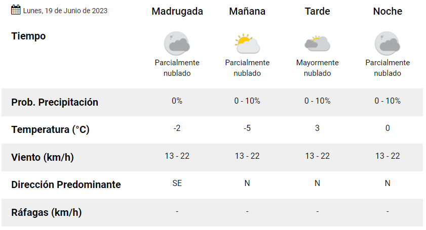 Según los datos meteorológicos, el pronóstico para hoy es de una temperatura mínima de -5°C y máxima de solo 3°C.