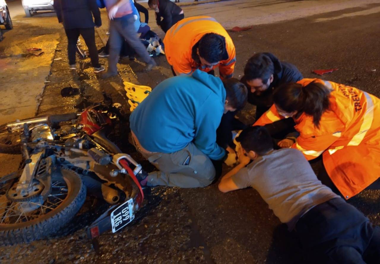 Anoche en Trevelin hubo un accidente de tránsito protagonizado por una camioneta y una moto. El hecho ocurrió en Avenida San Martín y Murray Thomas.