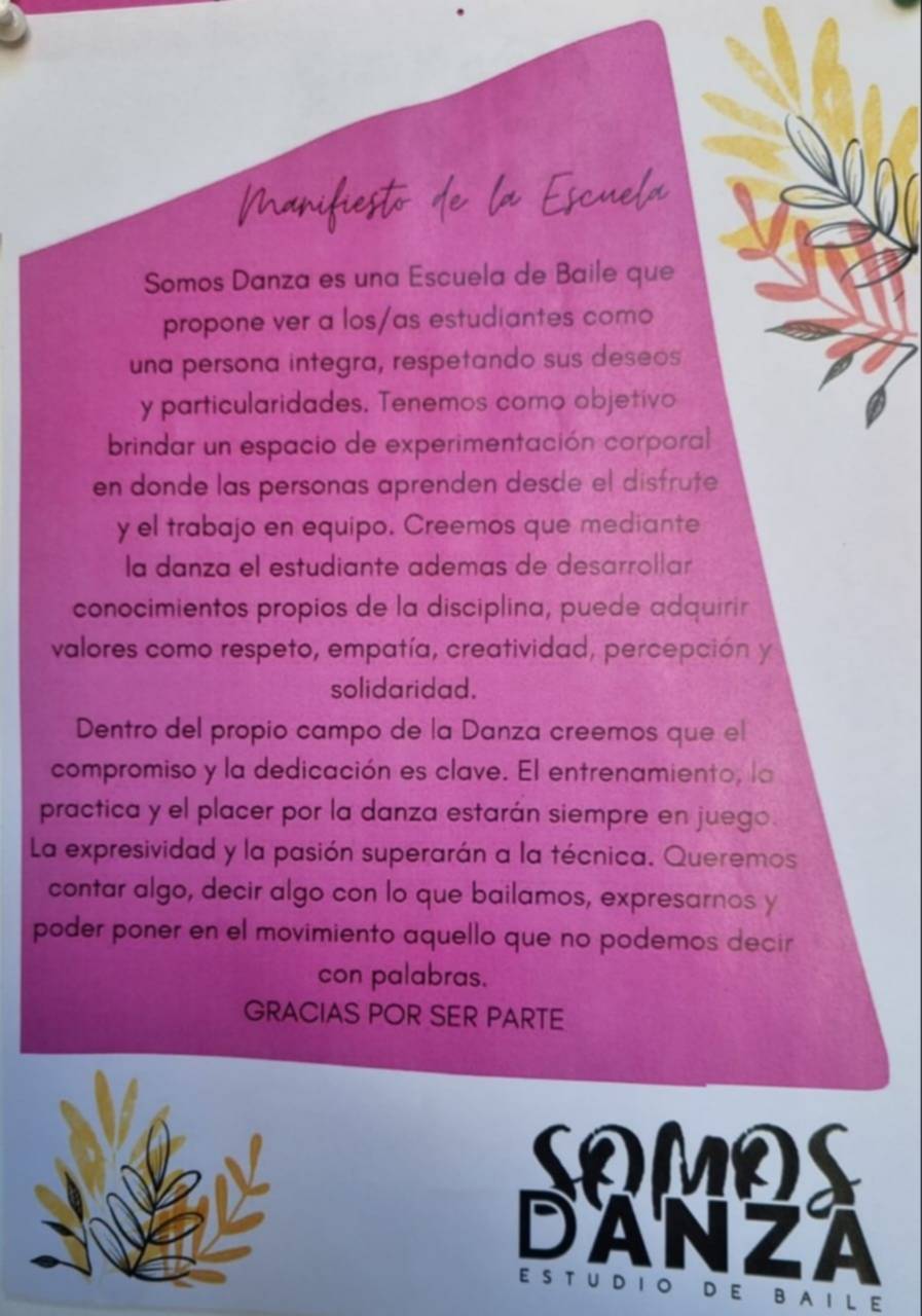 «Mi escuela se llama “Somos Danza” por el hecho de que somos en comunidad, tratando de trabajar con otro. Lo primero que resalto es la empatía y trabajar con otro«, expresó Mateos y agregó que, paralelamente, tiene una compañía de árabe y otra de contemporáneo.