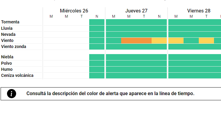 En horas de la noche se pronostica una disminución de la intensidad del viento, por lo que el alerta pasará a ser de color amarillo.