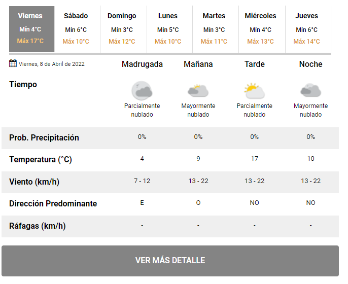 Sin frío por la tarde, la temperatura máxima está pronosticada en 17°C desde la base meteorológica del Aeropuerto, por lo que en la ciudad podría llegar a los 20°C.
