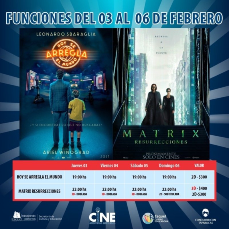 El Director de Cultura en dialogo con Red43 comentó la actividad de la sala, al respecto afirmó: «Arrancamos este jueves a las 19:00hs con «Hoy se arregla el mundo» y a las 22:00 «Matrix Resurrección» que es en 3D».
