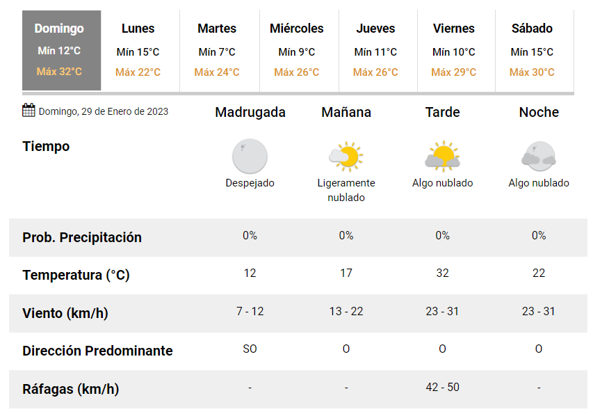 Por la tarde, podrían darse algunas ráfagas de viento de hasta 50 km/h.