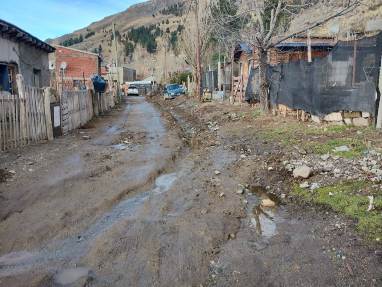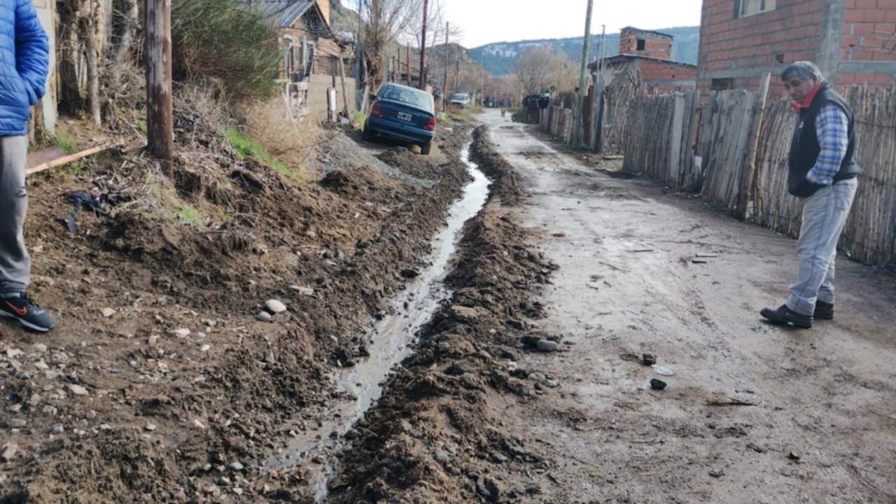 Uno de los tantos vecinos afectados por la situación, decidió por cuenta propia hacer otra zanja, con pala, para que el agua no ingrese a su vivienda. Como se puede ver en la imagen, la hizo con el fin de que el agua desemboque en el Arroyo Esquel.