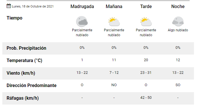 Según los datos oficiales que brinda la página del Servicio Meteorológico Nacional, este día lunes en la ciudad de Esquel tendremos una temperatura máxima de 20°C.