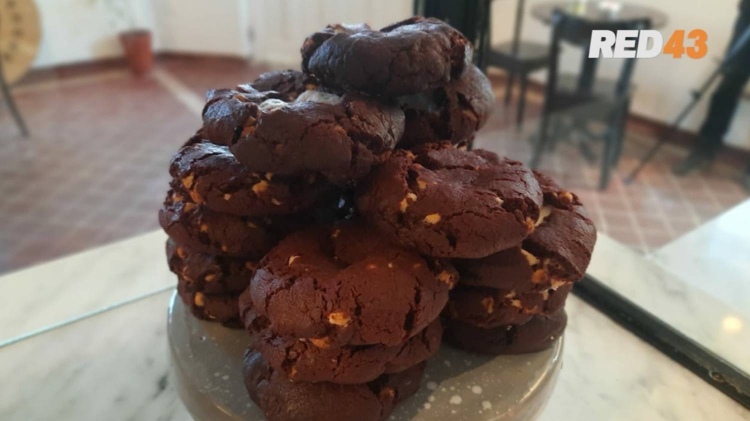 Lo mismo sucede con las galletas Red Velvet, una receta especial de chocolate con relleno de ganache de chocolate blanco y chips.