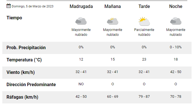 El Servicio Meteorológico Nacional anuncia ráfagas de viento para esta tarde.