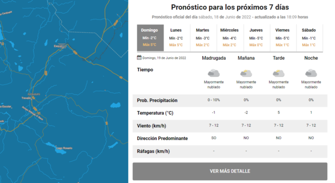 El Servicio Meteorológico Nacional pronostica una temperatura máxima de 5°C para este domingo, día del padre.