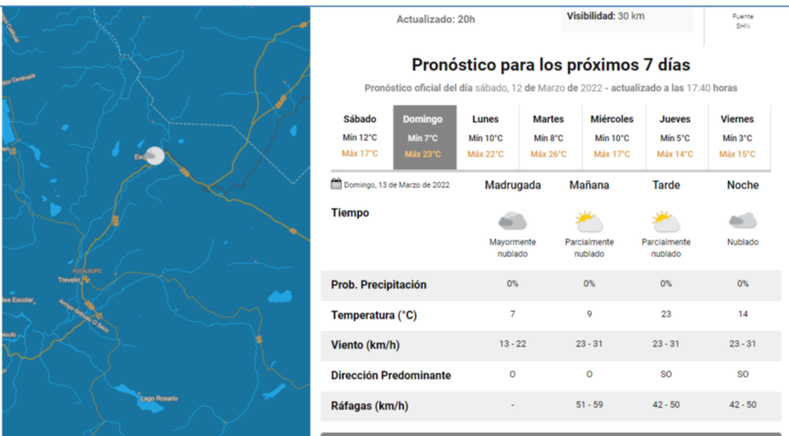 Los datos del Servicio Meteorológico Nacional indican una temperatura máxima de 23°C.