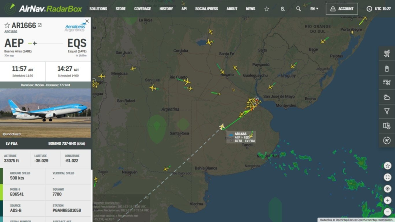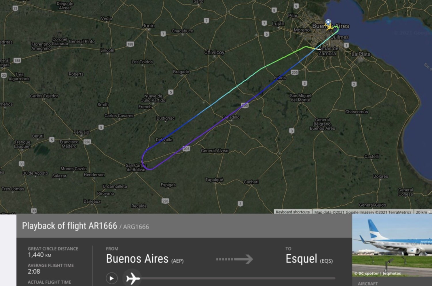 Pasadas las 14.20, el avión salió de Ezeiza y tuvo su normal viaje hasta Esquel.