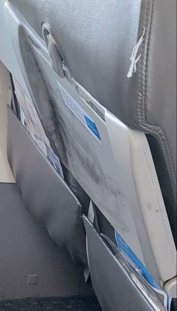 Así quedó el asiento 10B, donde se produjo la explosión: