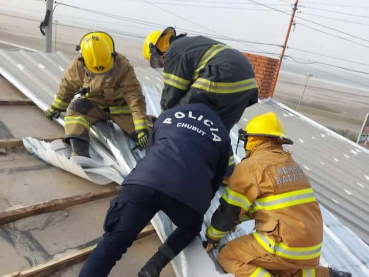 Las asociaciones bomberiles de Puerto Madryn, Rawson, Trelew, Camarones, Rada Tilly y Comodoro, reportaron numerosas intervenciones socorriendo a vecinos e instituciones de sus respectivos municipios, principalmente te por voladura de techos y chapas, y caídas de postes en la vía pública.