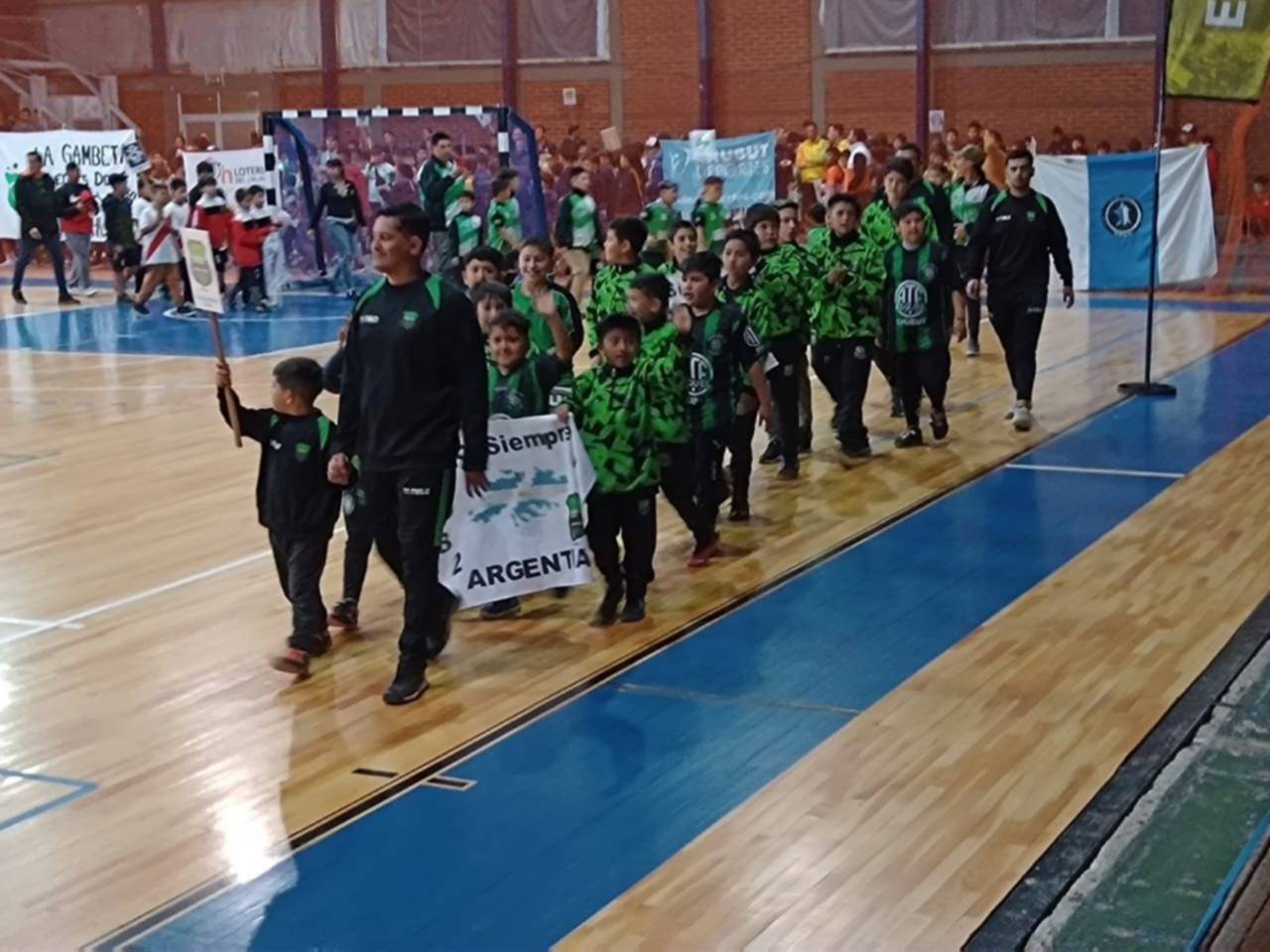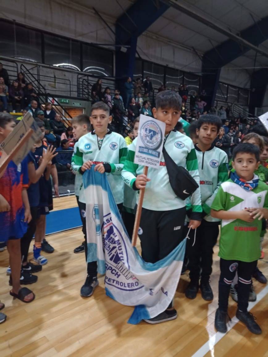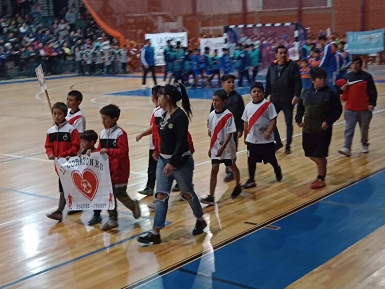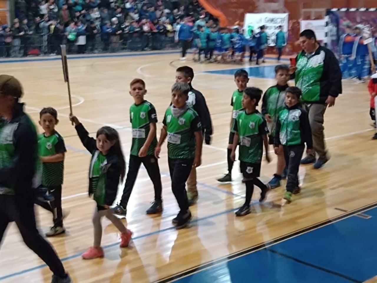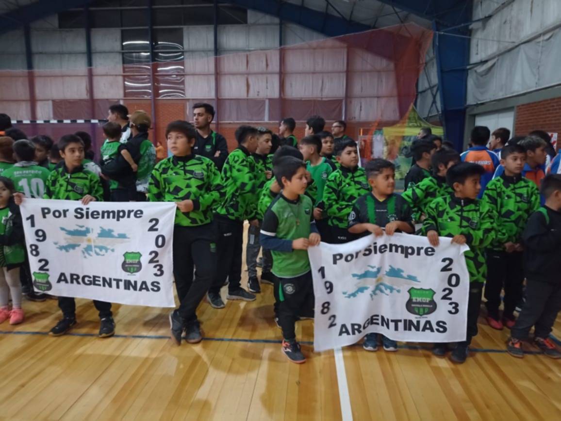 Un gimnasio municipal a pleno. El emotivo reconocimiento a los veteranos de Malvinas, donde niños del Deportivo Cañadón le dieron un presente; donde la Escuela Modelo portó una bandera con las islas Malvinas, bien Argentina como el mate, el dulce de leche y el colectivo.