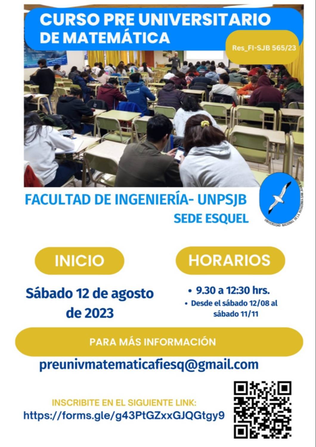 A partir del 12 de agosto se dictará un curso preuniversitario de matemáticas en la Facultad de Ingeniería de la UNPSJB. La jornada será dirigida a estudiantes de los últimos años de escuelas secundarias.