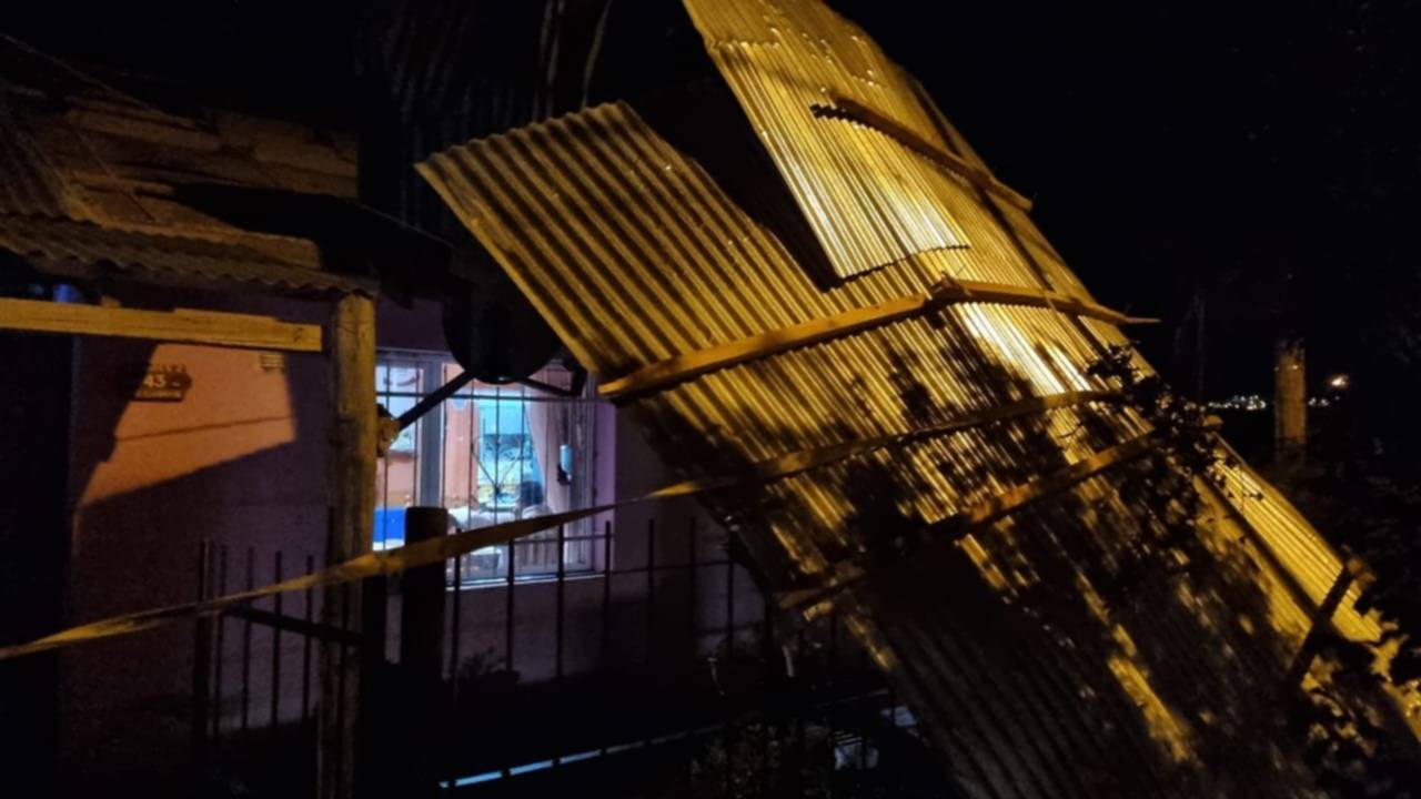En el barrio Badén, una vecina sufrió la voladura del techo de su casa y además, se registraron daños en la cartelería ubicada frente al Centro de Encuentro.