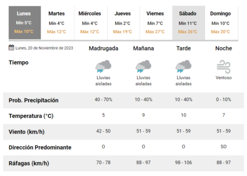De hecho, el propio SMN registra pronóstico de ráfagas superiores a los 100 km/h.