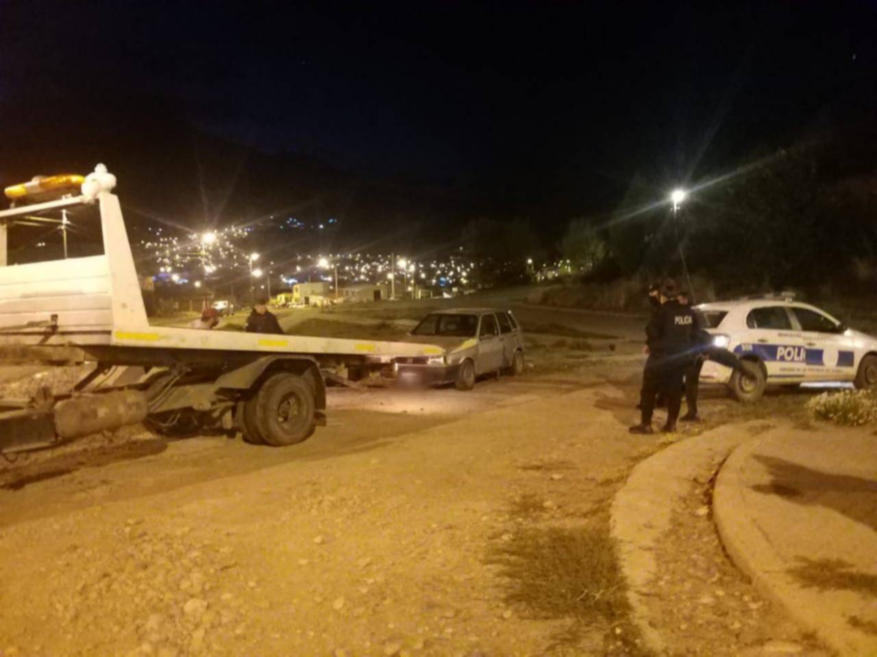 El vehículo llevó a cabo la huida por diferentes arterias en dirección al Barrio Cañadón de Bórquez, donde resultó interceptado con tres ocupantes a bordo, dos hombres y una mujer.