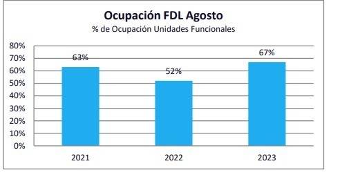 La Municipalidad de Esquel a través de la Secretaría de Turismo relevó los datos mediante el trabajo del observatorio de oferta y demanda turística, durante el fin de semana largo la ciudad que tuvo un 67% de ocupación en unidades funcionales (UF), incluyendo las noches del viernes al domingo.
