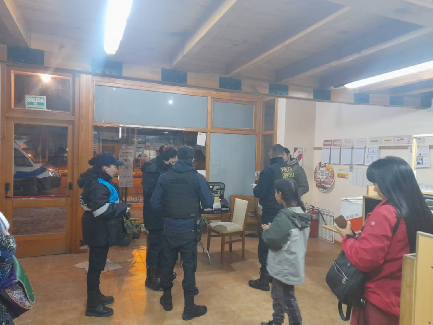 El hecho ocurrió el jueves en horas de la noche cuando personal de la Comisaría Segunda de Esquel, debió intervenir en un robo a mano armada en la Agencia de Quiniela N° 7005, ubicada en Av. Ameghino 1918.