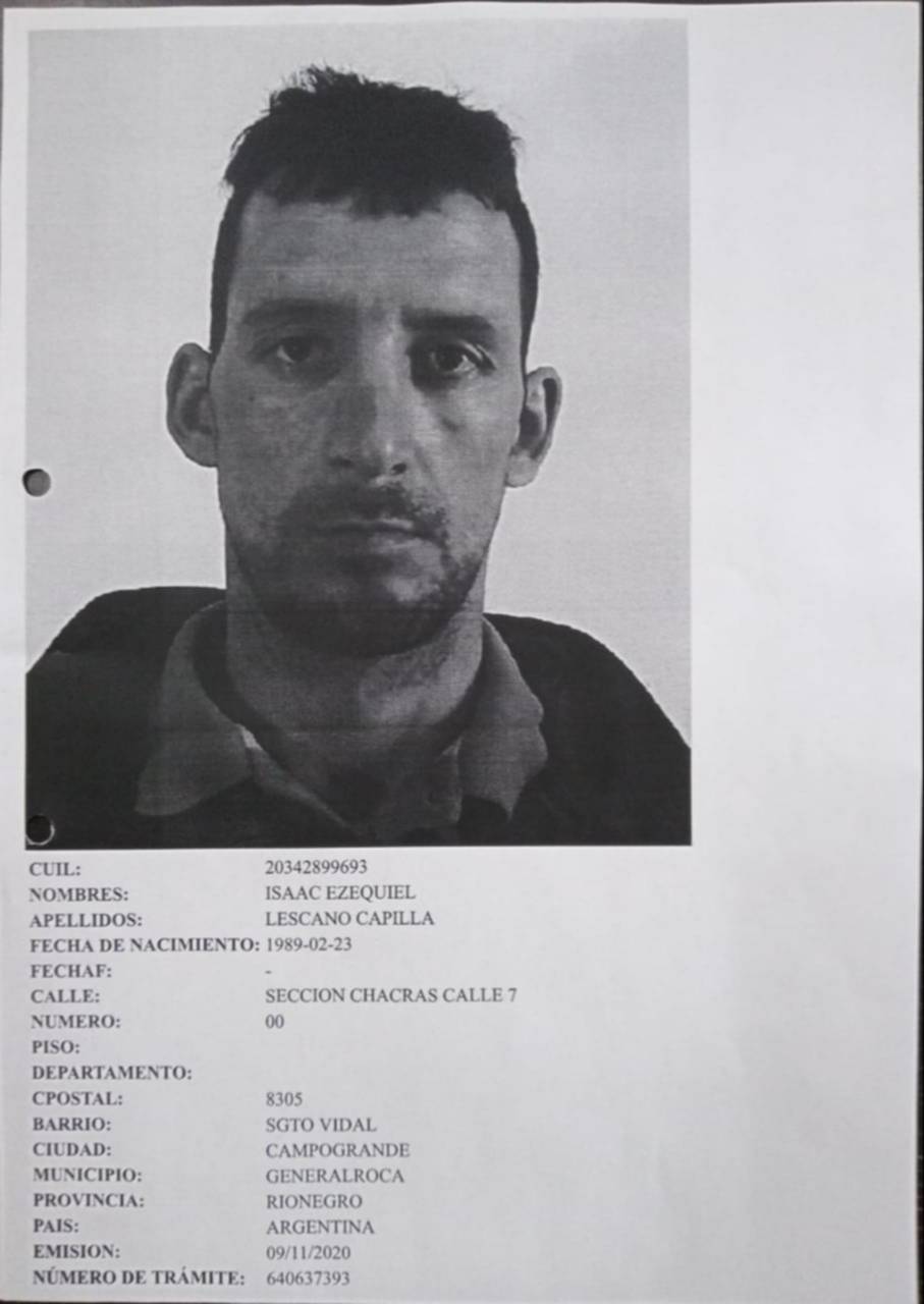 Se trata de Lezcano Capilla, Isaac Ezequiel; de 33 años de edad, oriundo de la provincia de Río Negro.
