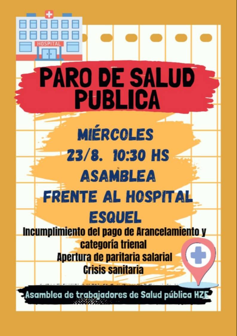 En Esquel, la Asamblea de Trabajadores de Salud Pública del Hospital Zonal Esquel convocaron a una asamblea que se realizará frente al nosocomio a partir de las 10:30.