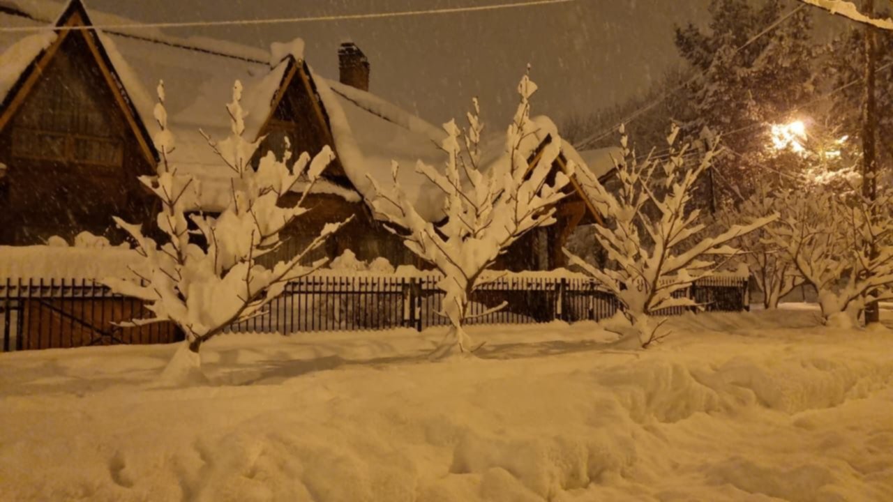 El Servicio Meteorológico Nacional anunció que este domingo con una máxima de 2°C, continuaría la nieve en Esquel y la región.