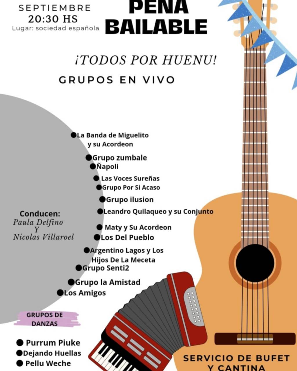 El evento se realizará en la Asociación Española a partir de las 20:30. Lo recaudado será destinado para pagar los viajes a Buenos Aires que Huenu y su familia deben realizar por controles médicos y estudios.