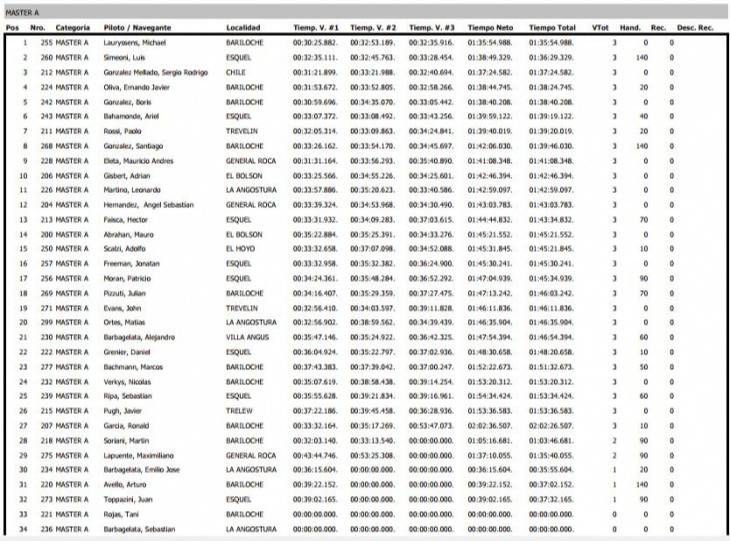 Con 35 motos, la Master A fue la divisional más numerosa y la victoria fue de un barilochense, Michael Lauryssens se quedó con el primer puesto de esa divisional.
