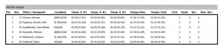 El de Bariloche, Germán Chávez triunfó en Master Senior, mientras que en Junior ganó Nicolás Szudruk de El Hoyo.