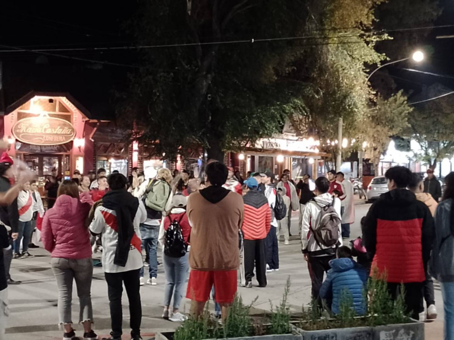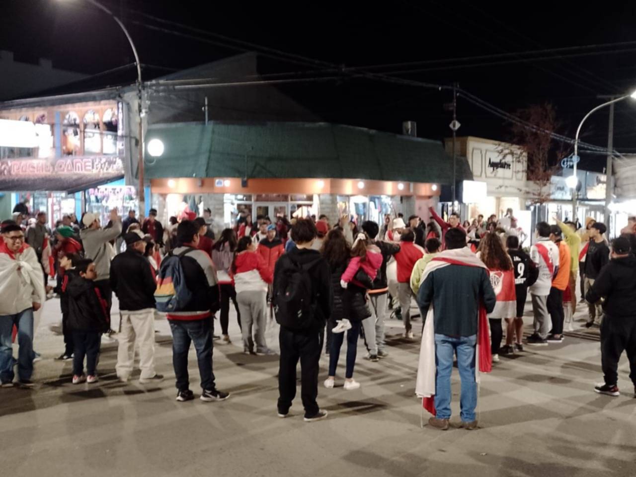 Los hinchas de River se acercaron a este sector de Esquel vistiendo la camiseta del equipo y manifestando su alegría por medio de cantos.