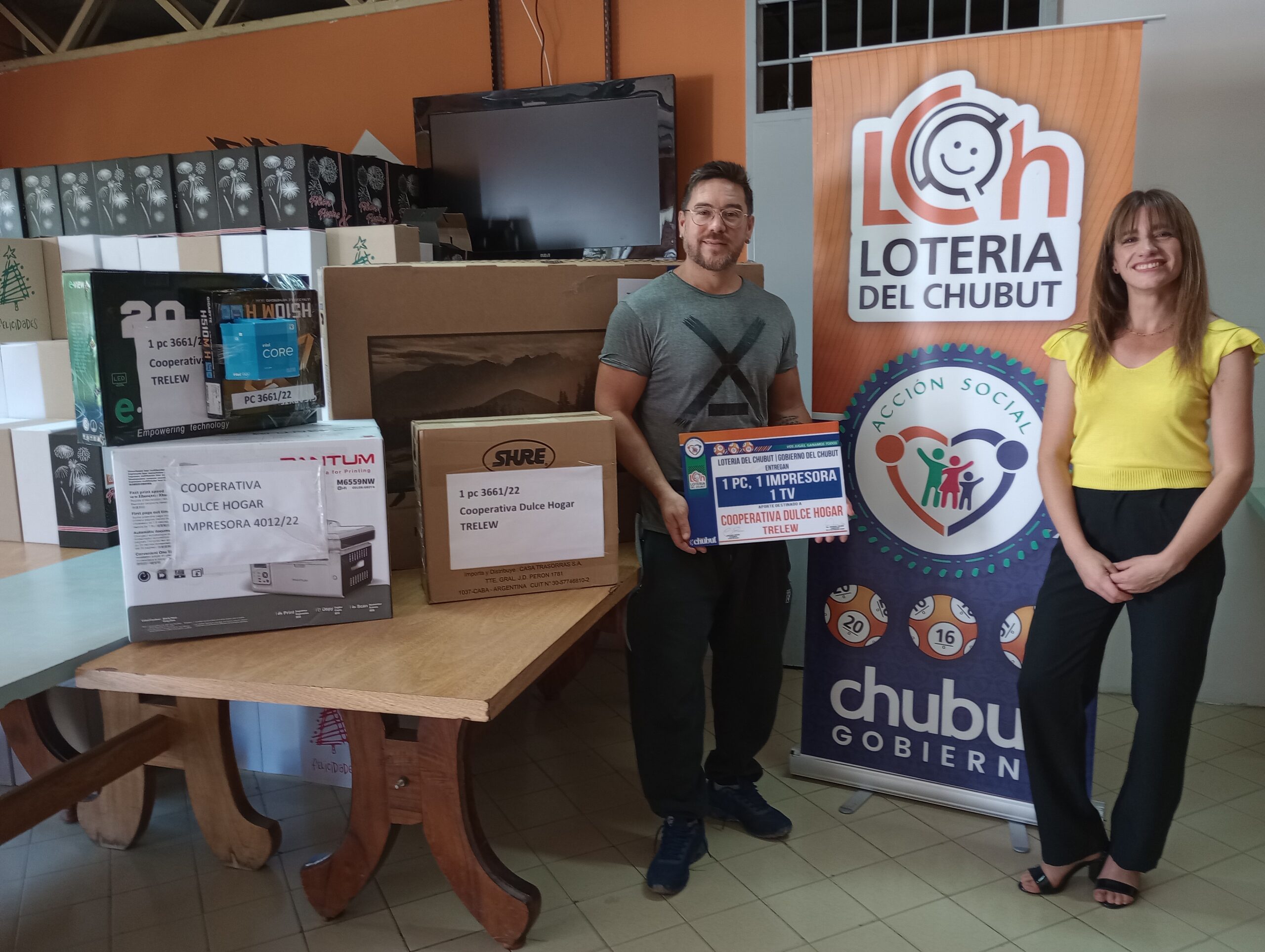 La gerente de Contabilidad y Finanzas del Instituto de Asistencia Social (IAS) Lotería del Chubut, Verónica Gigena, entregó herramientas destinadas al funcionamiento de dos instituciones reconocidas de la ciudad de Trelew como son la Cooperativa Dulce Hogar y fundación “La Minga.”