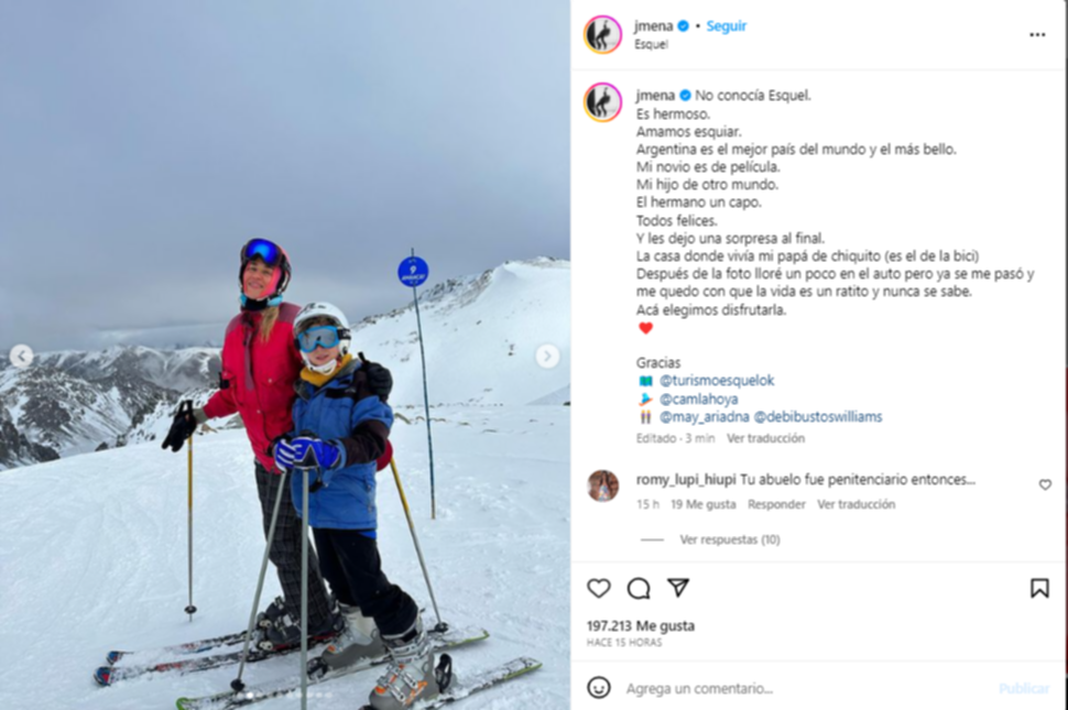 Jimena Barón se encuentra descansando junto a su familia, donde disfrutará de un amplio cronograma de actividades tanto Esquel como en Trevelin. Cabe destacar que Jimena Barón tiene en su cuenta de Instagram casi seis millones de seguidores, con quienes ya está compartiendo historias de sus días en Esquel y la zona.