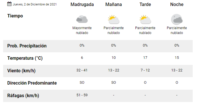 Se esperan ráfagas de viento para la mañana y para la noche.