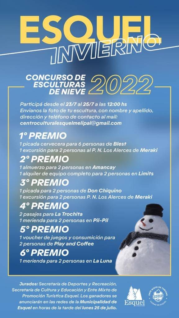 La Municipalidad de Esquel en conjunto con el Ente Mixto de Promoción Turística de Esquel, invita a la comunidad a participar del concurso de esculturas de nieve 2022.