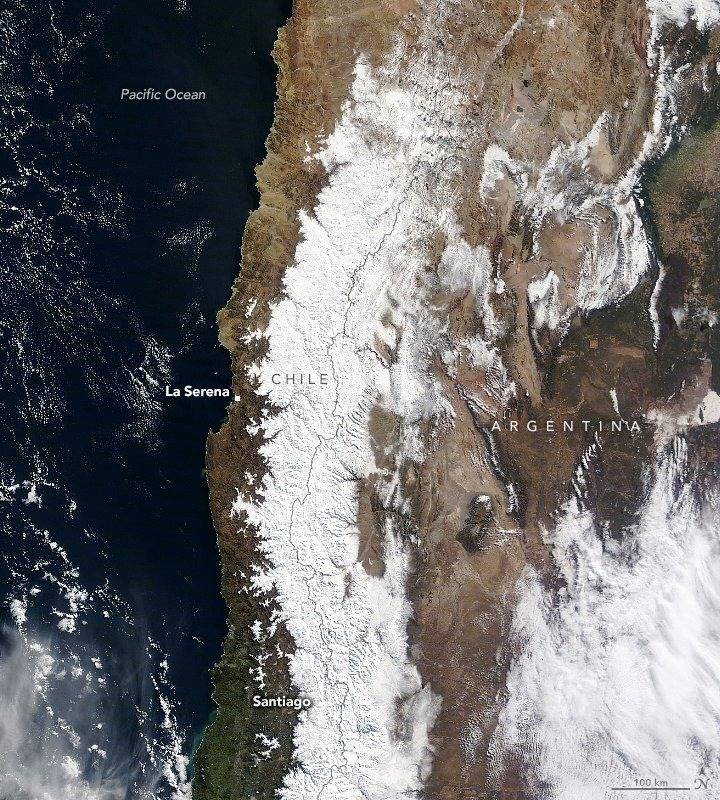 Con respecto a las imágenes sostuvo que fue captada el 16 de julio por el espectrorradiómetro de imágenes de resolución moderada (MODIS) en el satélite Terra de la NASA. La misma muestra un “manto de nieve fresca a lo largo de la cordillera entre Chile y Argentina”.