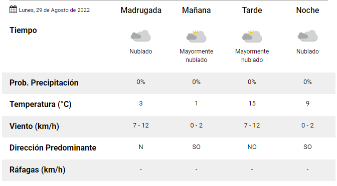 Durante la semana, la temperatura irá en descenso y, para este martes, se anuncia una máxima de 13°C.