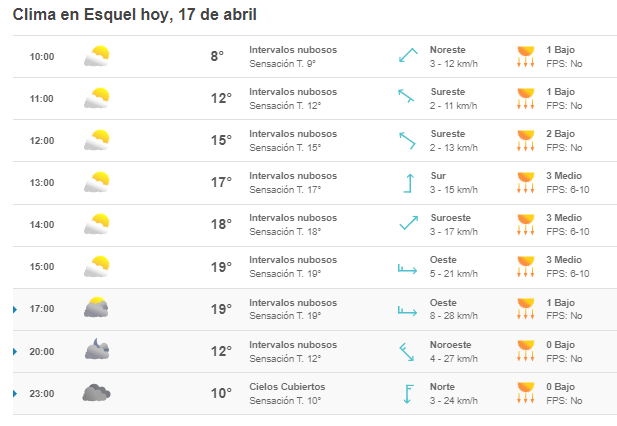 Según el pronóstico, habrá una jornada con cielo parcialmente nublado y temperatura máxima de 19°C.