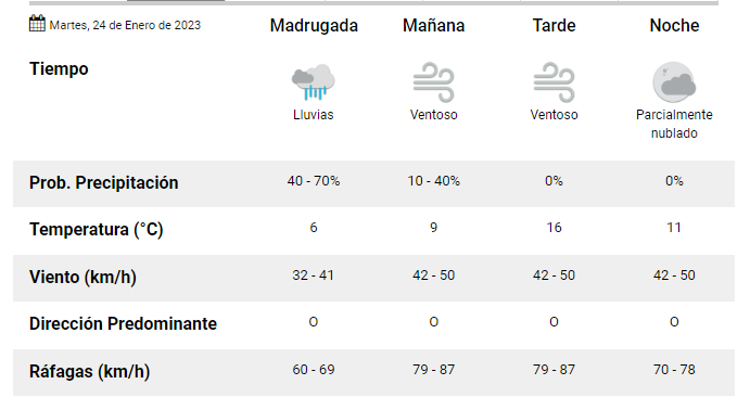 Según la información oficial que publica la página web del Servicio Meteorológico Nacional, este día martes en la ciudad de Esquel, tendremos una temperatura máxima de 16°C.