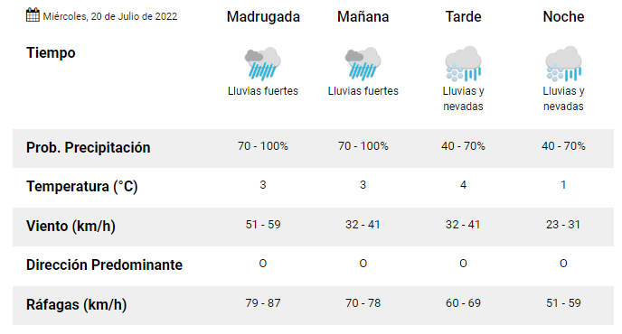 Según la información oficial que brinda la página del Servicio Meteorológico Nacional, este día miércoles en la ciudad de Esquel, tendremos una temperatura máxima de 4°C.