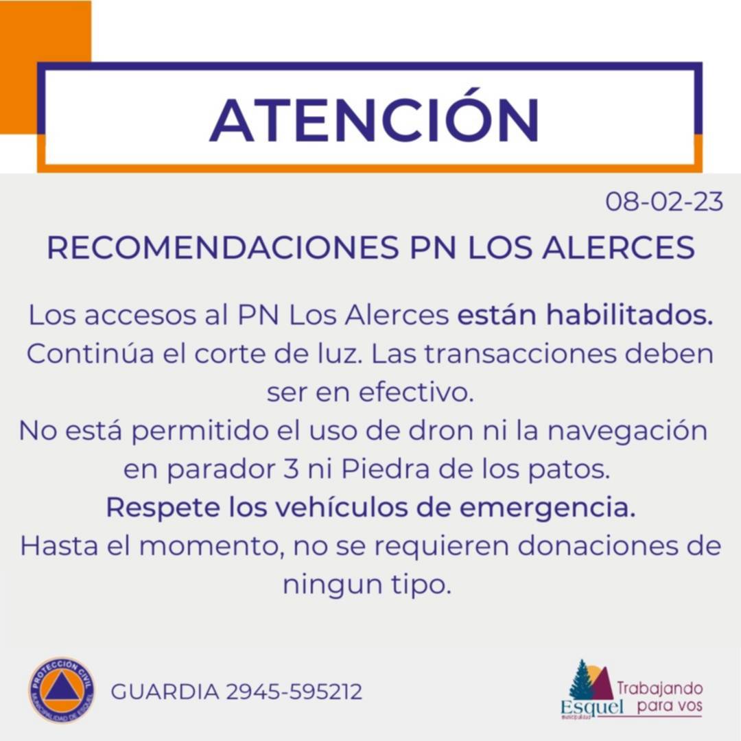 En el marco del incendio que continúa activo en el Parque Nacional Los Alerces, se dieron a conocer los accesos habilitados y las recomendaciones que deben seguir todos los visitantes.