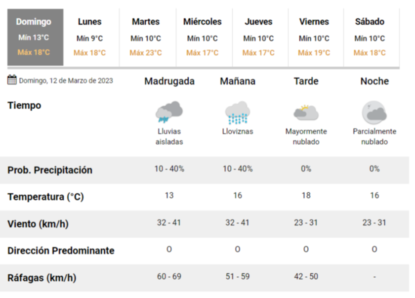 Además, el pronóstico del Servicio Meteorológico Nacional dice que habrá lloviznas por la mañana; cielo mayormente nublado por la tarde y parcialmente nublado hacia la noche.
