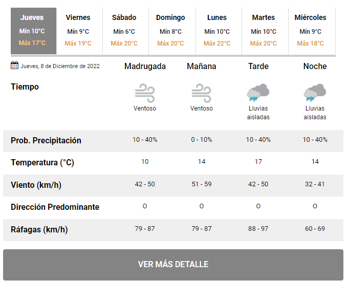 Según el Servicio Meteorológico Nacional, para hoy se espera mucho viento por la mañana y tarde, con ráfagas que podrían llegar cerca de los 100 km/h.