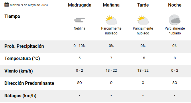 El Servicio Meteorológico Nacional (SMN) anunció para este martes 9 de mayo una temperatura mínima de 5°C y una máxima que alcanzaría los 15°C.