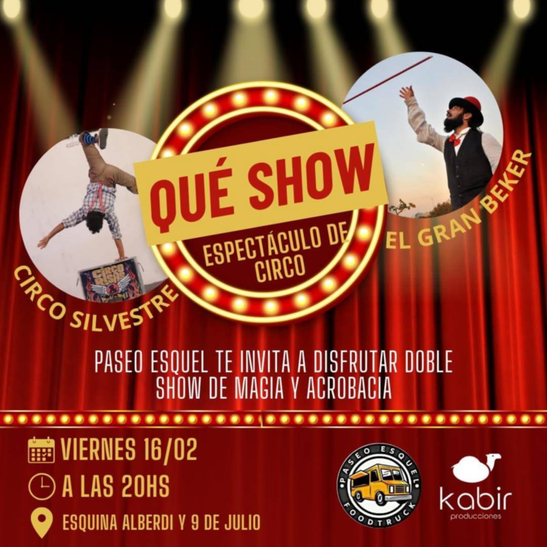 El viernes 16 de febrero se presentará el espectáculo de circo «Qué show» a las 20 hs en el Paseo Esquel, Será un show protagonizado por los payasos Silvestre y el Gran Beker.