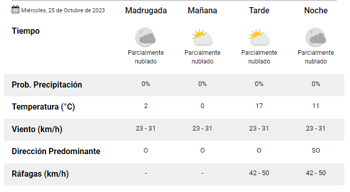 Según la información oficial que publica la página web del Servicio Meteorológico Nacional, para este día miércoles en la ciudad de Esquel, se espera una temperatura máxima de 17°C.