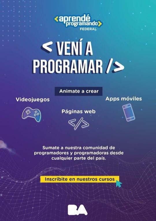 Más información: https://aprendeprogramandoinscripciones.bue.edu.ar/