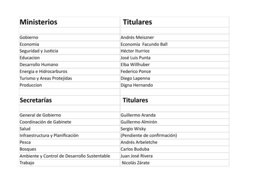 La propuesta de Torres, fruto de deliberaciones con su equipo, estipula un gabinete a partir del 10 de diciembre constituido por 8 ministerios y 8 secretarías, reduciendo el total de áreas de 17 a 16. Este nuevo esquema incluye la conversión de tres ministerios actuales —Infraestructura, Salud y Ambiente— a rango de secretaría, mientras otros reciben ajustes nominales y de competencias.